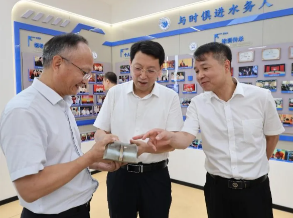 6月19日,浙江省總工會黨組成員、副主席孫耀銅率省、市、區工會系統、報社、作家等人員一行13人走進柯橋水務職業培訓學校開展“百名作家結對訪談百名勞?!被顒?,通過聽取介紹、座談交流、實地走訪等方式,對全國勞模丁衛松相關事跡進行采訪交流,集團領導馮梁峰、羅書卿參加。