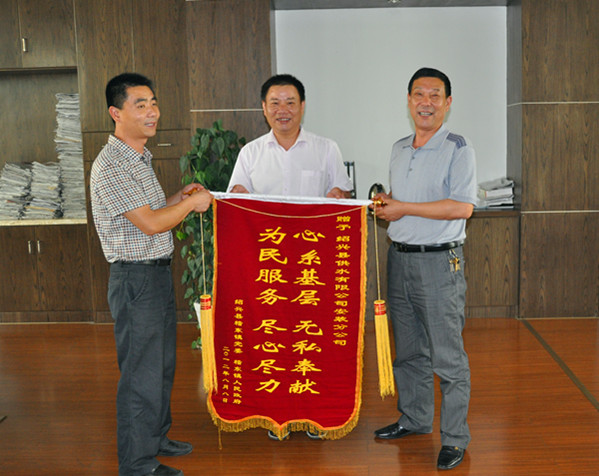 圖為供水公司安裝分公司經理接受錦旗