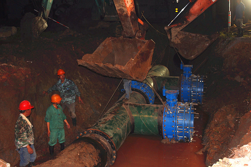 切割管道,更換、焊接新管道,安裝控制閥,沖洗管道……8月7日晚10時,濱海供水公司按計劃開始小舜江一期馬鞍支線加壓泵站管線兜口工作,至8月8日凌晨7時,經過長達9小時連夜冒雨緊張作業后,兜口工作順利完成,停水區域陸續通水,且水質正常、水壓穩定。