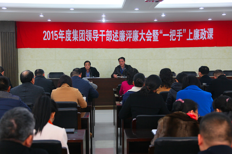 12月8日,集團公司召開2015度的領導干部述廉大會暨“一把手”上廉政課。會議由集團公司黨委副書記、紀委書記高小林主持,集團公司倪阿泉、單寶子、祁金鳳等領導班子成員,集團公司管理干部及機關全體職工參加。