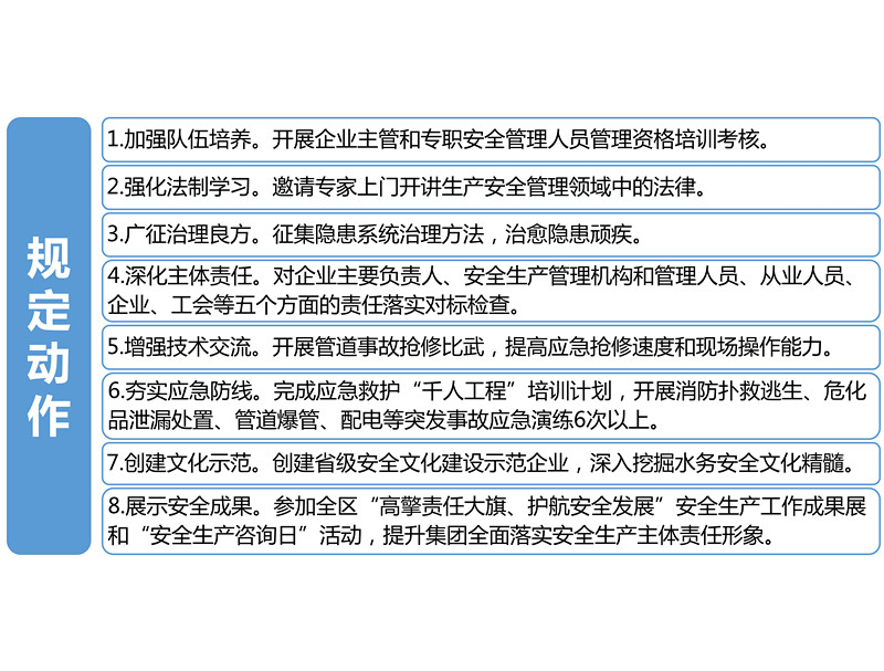 本屆安全生產(chǎn)文化月以宣傳貫徹中共中央國(guó)務(wù)院《關(guān)于推進(jìn)安全生產(chǎn)領(lǐng)域改革發(fā)展的意見》為主線,以“全面落實(shí)企業(yè)安全生產(chǎn)主體責(zé)任”為主題,以創(chuàng)建省級(jí)安全文化建設(shè)示范企業(yè)為契機(jī),立足集團(tuán)公司“四全、四化”安全體系建設(shè)中心,通過開展八項(xiàng)“規(guī)定動(dòng)作”和七項(xiàng)“特色活動(dòng)”,強(qiáng)化安全“紅線”意識(shí),弘揚(yáng)水務(wù)安全文化,為促進(jìn)集團(tuán)可持續(xù)安全健康發(fā)展提供有力的思想保證、文化條件和輿論支持。