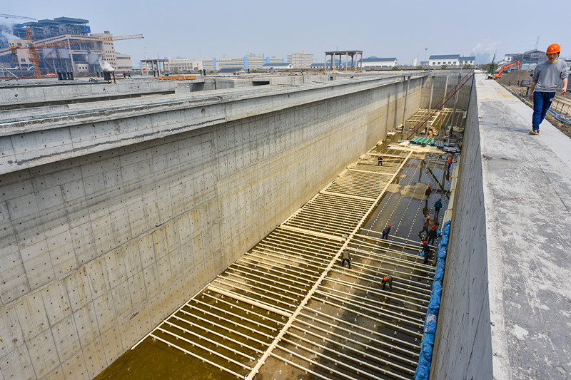 自2017年4月動工至今,投資5億元的20萬噸/日集中預處理二期工程進展順利。目前,鼓風機、吸刮泥機等關鍵設備已安裝到位,預計4 月底完成設備安裝,5月底完成調(diào)試,6月底如期投運,形成集聚區(qū)40萬噸/日集中預處理能力,屆時可全面滿足集聚區(qū)一、二、三期60家企業(yè)約35萬噸/日的污水排放需求。