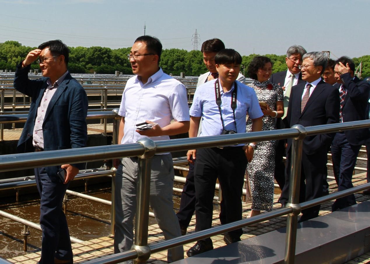 5月3日,由韓國大邱廣域市金延經濟副市長帶隊的韓國大邱市經濟合作訪問團到紹興水處理公司參觀訪問。在集團董事長周儉、副總經理馮梁峰的陪同下,訪問團實地參觀了生活污水處理系統A/O工藝現場,并深入了解韓國攪拌機在該公司的應用情況。