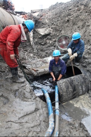 該污水管道是全縣三大排污管線之一,承接了錢清、楊汛橋、夏履、湖塘、柯巖的工業污水和生活污水排放。經過前期充分準備,整項遷建工程從5月25日開始,至6月18日進行兜口,通過搶修人員的持續作戰,兜口工作提前完成,遷建工程比計劃提前15個小時完工。