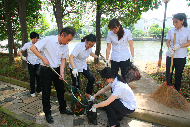 集團(tuán)下屬各黨總支、黨支部也開展了形式多樣的“主題黨日”活動,柯橋供水公司黨總支組織黨員集中學(xué)習(xí);濱海供水公司黨支部組織黨員到府山烈士墓開展現(xiàn)場教育;排水公司黨總支組織黨員到興越東區(qū)開展生活污水管疏通;江濱水處理公司黨支部組織黨員到集聚企業(yè)(稽山印染、華夏印染)開展走訪活動;恒通水務(wù)建設(shè)公司黨支部組織黨員沿錢陶公路集中清理犭央犭茶湖綠化垃圾;紹興水處理公司黨總支組織黨員開展了義務(wù)勞動。
