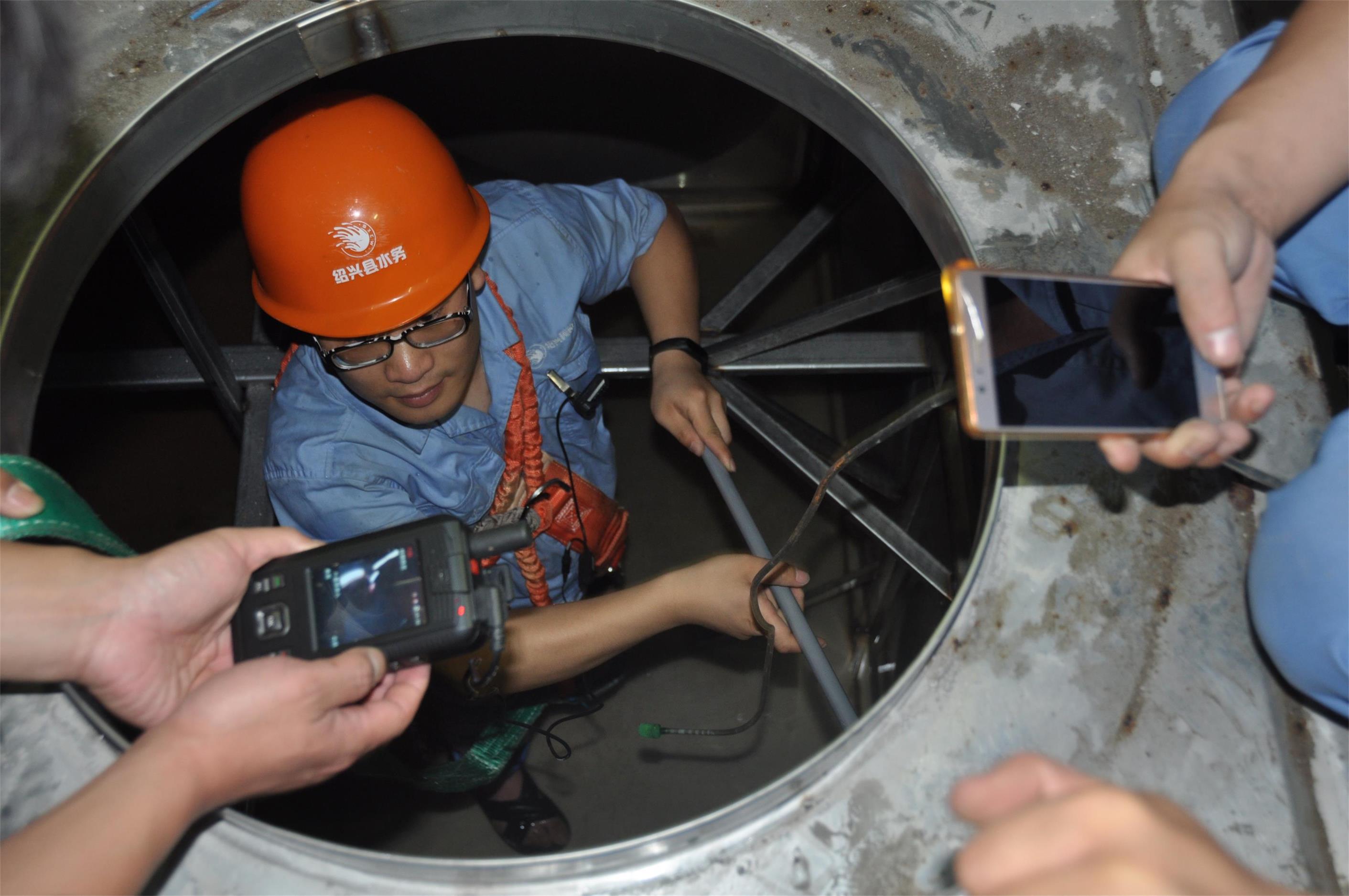 620日上午,位于和諧家園小區6幢地下一樓的水箱房內,供水公司工作人員正在對箱式無負壓設備水箱進行清洗。